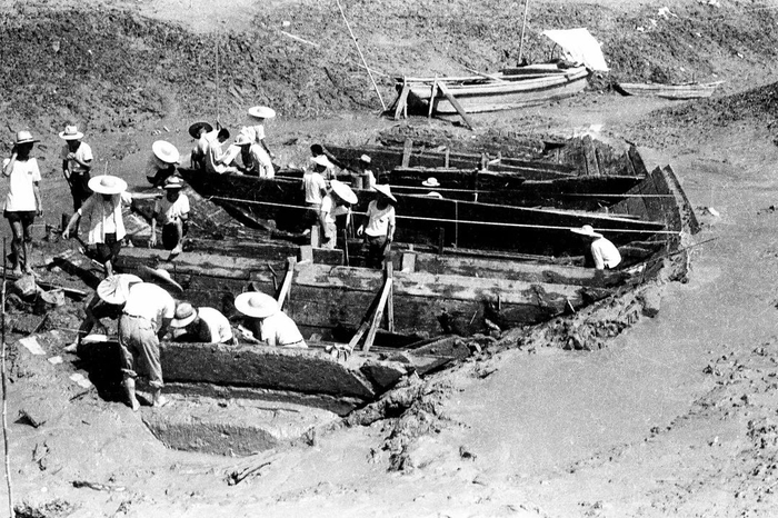 1974年,庄为玑带领学生参与泉州宋代沉船考古发掘,图为考古发掘现场