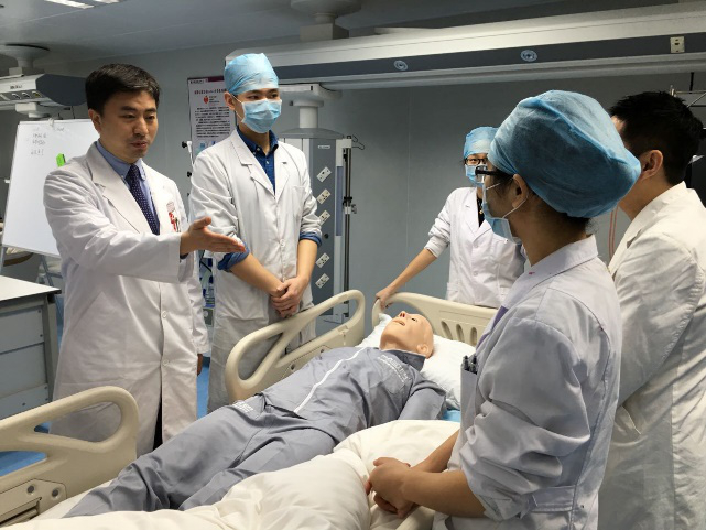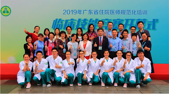 ▲广东省住院医师规范化培训临床技能竞赛现场(2019年4月获团队特等奖第一名,包揽内科、外科、妇产科、儿科和全科医学所有单项个人技能项目第一名)