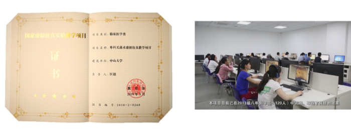 ▲外科无菌术虚拟仿真教学项目”获“国家级虚拟仿真实验教学项目”
