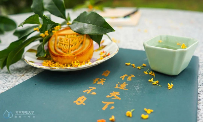 吃着象征团圆幸福的南邮版定制月饼,