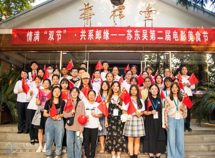 晚上,东吴物业的工作人员还在华礼堂为大家放映了祝福视频和爱国电影。