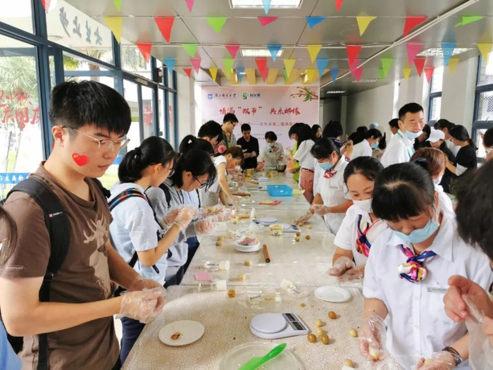 9月30日上午,仙林校区柳苑一楼大厅举办了“情满双节,共系南邮”主题活动。为了让柚子们能够吃到自己亲手制作的中秋月饼,仙林校区北区的阿姨们集中在柳苑,特意请来专业的西点团队,指导柚子们制作月饼。活动现场,柚子们开心地制作属于自己的第一份中秋月饼。