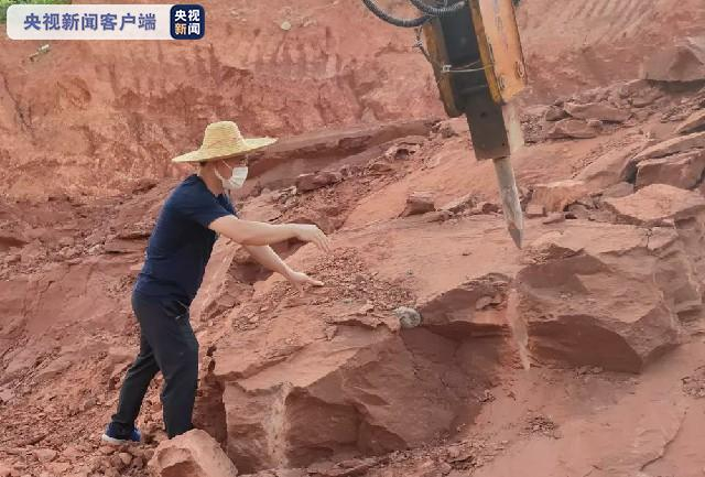 近日,记者从广东河源恐龙博物馆获悉,此前在江东新区临江镇联新村的一处红砂岩山坡发现的疑似恐龙蛋化石,经博物馆工作人员抢救性发掘,已确认为恐龙蛋化石,并抢救性发掘出数窝窝状恐龙蛋化石,其中完整的恐龙蛋化石共计33枚,河源馆藏恐龙蛋化石数目再创新纪录。