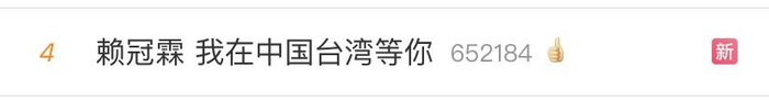 赖冠霖“我在中国台湾等你”此言一出,今天(1日)下午很快就上了微博热搜。↓