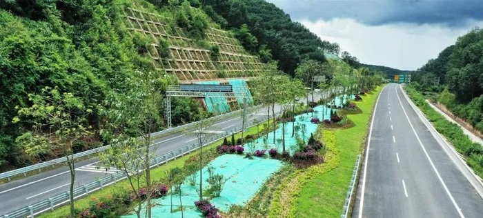 项目全线共设置互通式立交3处、服务区1处,主线桥隧比达21.43%,其中,南腊特长隧道为全线控制性工程,全长(单幅)6539.79米。