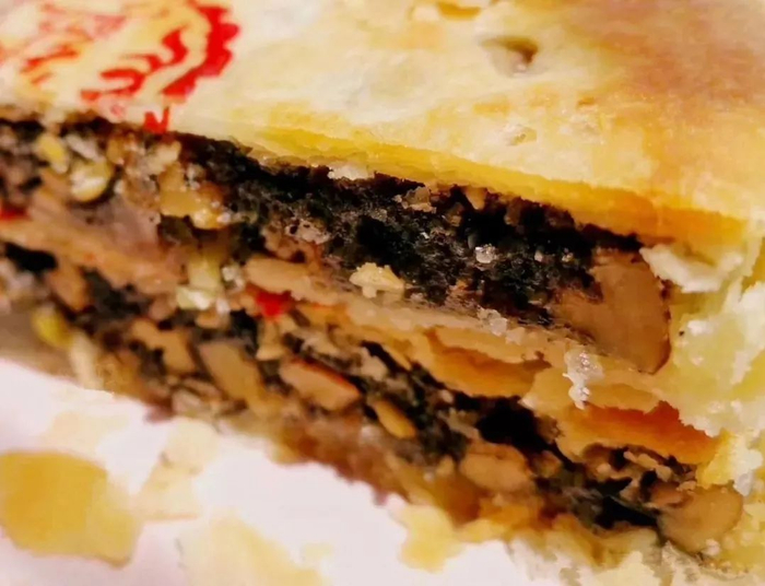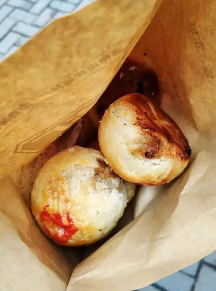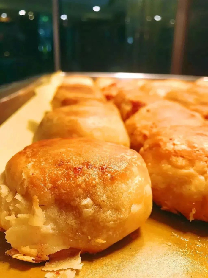 趁热咬上一口,香酥的饼皮包裹着鲜美多汁的榨菜肉馅,吃起来厚实又饱满。