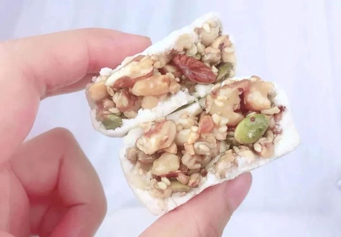 裹满芝麻的外皮酥脆无比,轻轻一掰便露出满满的肉馅儿、花生、红枣、瓜子仁、蛋黄……口感肥而不腻。