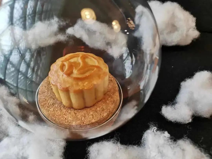 圆滚滚的月饼拿在手里几乎没有重量,掰开黄而不焦的外皮一探究竟,里面竟然是空心的。