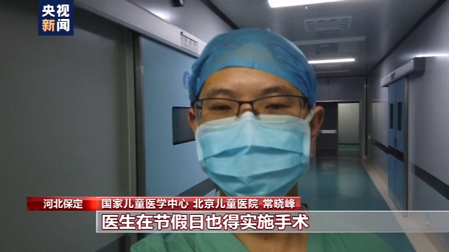 国家儿童医学中心 北京儿童医院 常晓峰:这里就是手术室,有时遇到急诊,医生在节假日也得实施手术。今天我们要完成5台手术,一台手术的时间至少需要5个小时,时间再晚全力以赴救治患儿是第一位的,因为高铁、因为京津冀协同发展,孩子们就安心在家门口,得到北京专家的治疗,这就是“患儿不动专家动”。手术马上要开始了,我今晚就要留在这儿守着这些孩子们,愿我们都能用白衣之力,让他们健康平安。