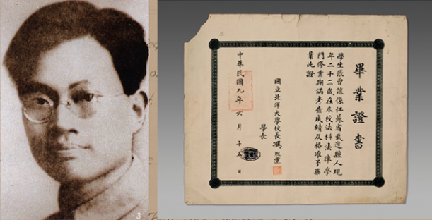 右图是他的毕业证书(原名“张曾让”)