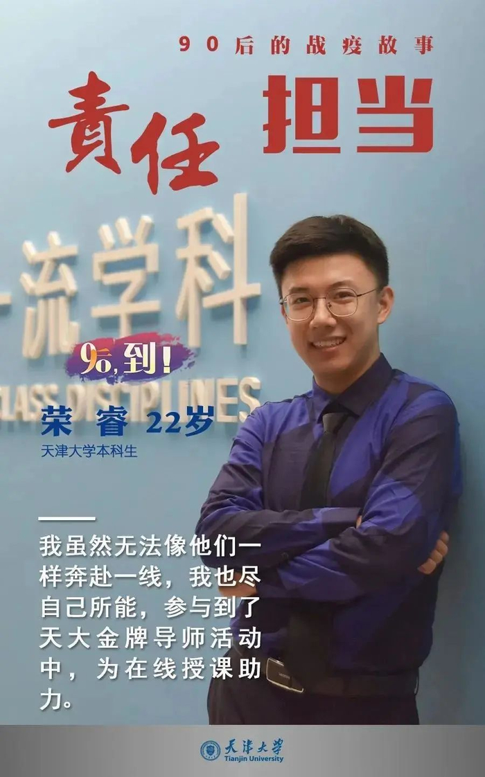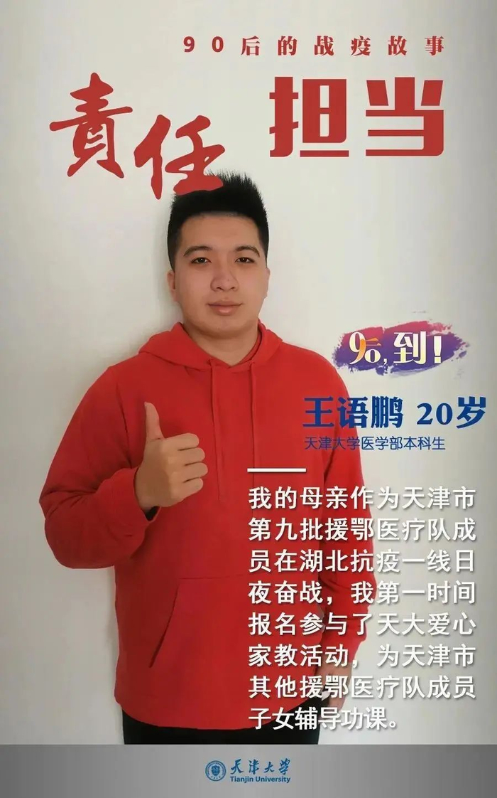 疫情之中,“90后”为代表的青年一代挺身而出、担当奉献。年轻的天大人,用自己的行动,给出了关于责任和担当的回答。