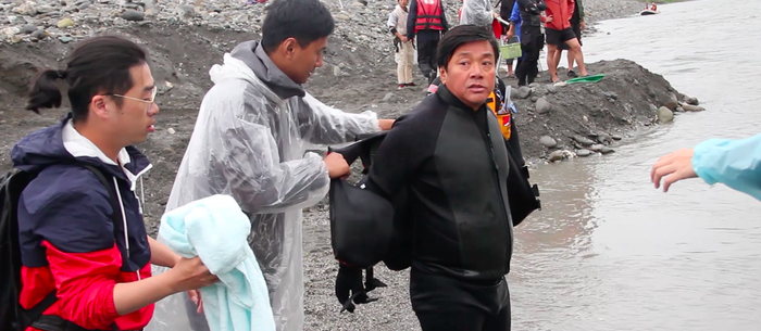 在试戏的时候,成龙和母其弥雅被卷进急流中,差点淹死。成龙整个人被吸到水底,背贴着大石头,上面是翻掉的水上摩托艇,完全推不动,当唐季礼看到成龙大哥在水里消失的时候,眼泪都下来了,还好成龙坚持了30秒后,被工作人员给救上来了。母其弥雅掉进水中,一直抓着一根树干,水流一直冲着她,只有两个手露出来,人在水下面,工作人员把她救上来,她脸都发青了。正式开拍的时候,水流比试戏时还要急,但因为有了上次的经验,导演特别小心。