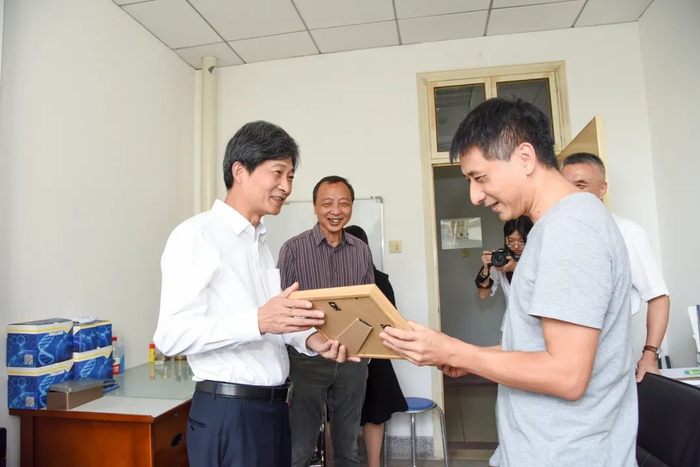 “村长,我们来看望你了!”还未到食科院247办公室,高翅就喊着王鲁峰的“雅号”,而“别不把村长当干部”的话语则让现场充满了融乐。