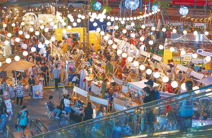 10月2日晚,海口N次方公园,“岛民的岛”国庆市集现场人头攒动,十分热闹。