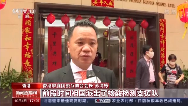 香港家庭团聚互助会会长 苏清栋:前段时间祖国派出了核酸检测支援队,有效帮助香港控制疫情,有祖国为依靠,有中央的关心和内地人民的支持,我们坚信,我们很有信心,在此我们一起祝福伟大的祖国繁荣昌盛,香港繁荣稳定, “一国两制”行稳致远。