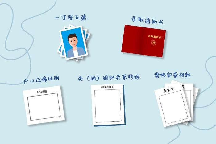 每位新生须携带:①浙江工业大学研究生录取通知书;②硕士、博士研究生新生须分别按照学校研招官方网站发布的《浙江工业大学2020年硕士研究生复试考生须知》、《浙江工业大学2020年博士研究生考试招生考生须知》要求,携带资格审查所需所有材料的原件和复印件(或打印件)供学院复审核验,其中除《政审表》必须是原件外,其他所有材料的复印件(或打印件)统一A4纸规格装订成册提交学院备查保存