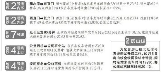 原标题:北京地铁多条线路10月6日至8日延长末班运营时间