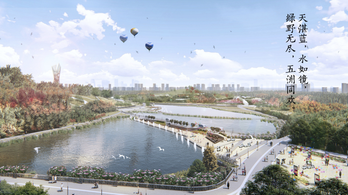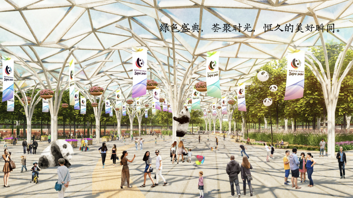 基于北京林业大学园林学院团队牵头编制的规划设计成果,本届世园会提出了“公园城市、美好人居”的主题,通过“轻触碰、低影响、可持续、全参与”的规划设计理念,充分利用典型的林盘基底,以及河流、湿地、农田、果园、林地等自然景观要素,尽力保有场地自然肌理,设置八大展区,呈现多彩观展体验,向全世界呈现一届蜀味十足、创意无限、精彩纷呈的绿色盛会。