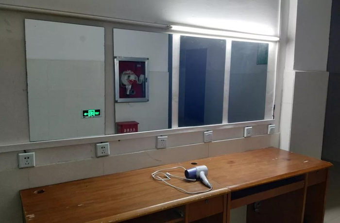 每栋寝室一楼还有不限电压的插板,同学们可以在这里吹头发。