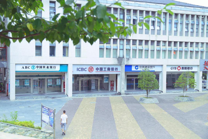 虽然现在大家都会选择在网上银行办理业务,但是总会有用得上实体银行的时候,为了给大家提供方便,学校在一食堂旁边设立了几家银行ATM机:中国农业银行,中国工商银行,中国建设银行,贵阳银行;在邮政快递旁边设立了邮政银行;花溪农商银行在南门旁边。