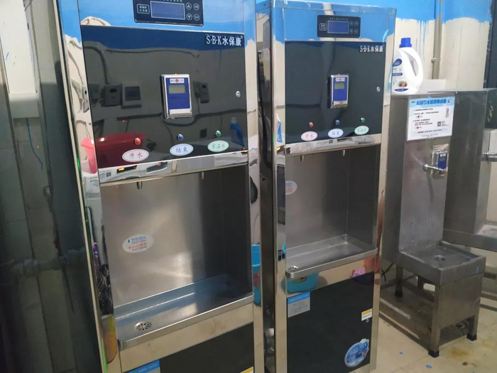 3. 接热水:打开软件,点击界面的饮水机搜索附近的设备,预付后再触摸刷卡键上的红色按钮就出水了,接水结束后,记得点击结束按钮。接水时一定要注意安全,避免烫伤。