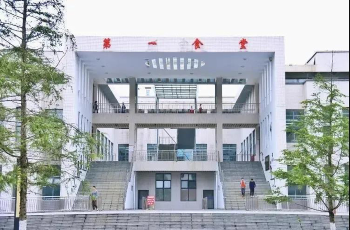 二食堂:位于12栋和13栋的对面,风雨体育馆旁。一楼提供早餐和饭菜,面包小吃等等,二楼供应粉面,可全天就餐,三楼以上是学生社团活动室。一楼设有超市,供应贵州特色产品以及各种水果等食物,方便同学们购物。