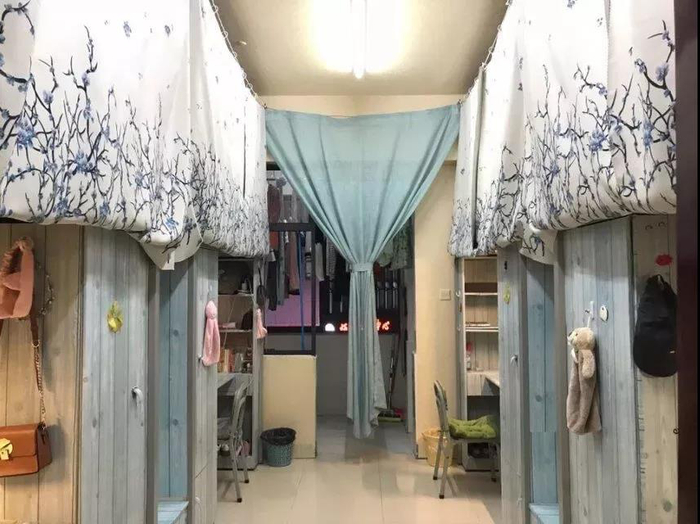 每个寝室都有独立卫浴,有热水供应,每层楼都有开水房和洗衣间。