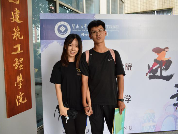 倪道强是应用物理专业的新生,陪同他来报到的还有一名口腔医学专业的学姐。“我是因为她,才考上暨南大学的。”倪道强腼腆地笑着说。