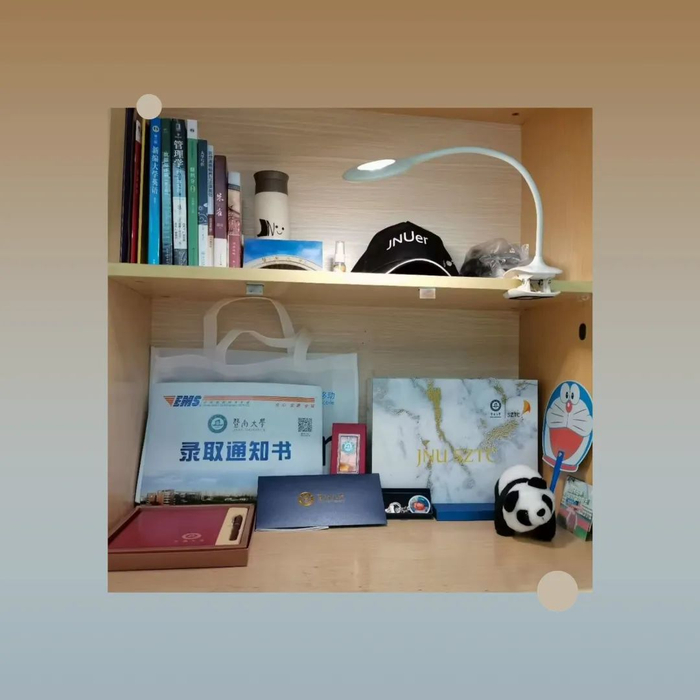 当时我们高中班主任有让我们自己设立一个目标,然后我设立的目标就是考上暨大,因为我当时想的是暨大分数挺高的,这个目标让我有个奔头,但自己其实不是很有把握。等到分数出来的那一刻我才发现分数远远超出了我的预期,我很开心能实现这个目标。
