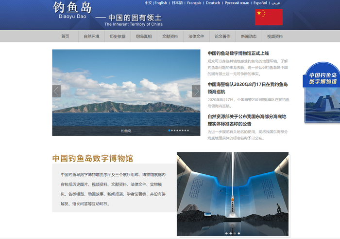 2020年10月3日,中国钓鱼岛数字博物馆在钓鱼岛专题网站( www.diaoyudao.org.cn)正式开通上线。