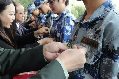 校领导为新生代表佩戴校徽
