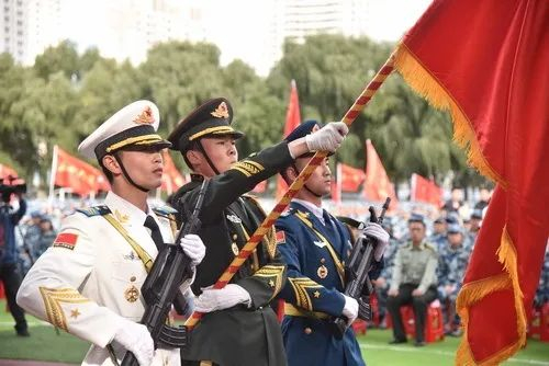 壮志激越、英姿飒爽——大会在庄严的国歌声中拉开序幕,鲜艳的五星红旗冉冉升起,一张张青春洋溢的面孔写满了激动、自豪与憧憬。在军训教官代表的主持下,分列式表演正式开始。各连队学员们步履铿锵、目光坚定,铿锵有力的喊口号、气势如虹的齐步走、步伐矫健的正步踢、严肃庄重的敬军礼,一个个方阵精神抖擞地通过主席台接受检阅,这一刻,他们是全场的焦点,经过军训生活的历练,新一代东农人气宇轩昂的精神风貌赢得了全场的掌声与喝彩!