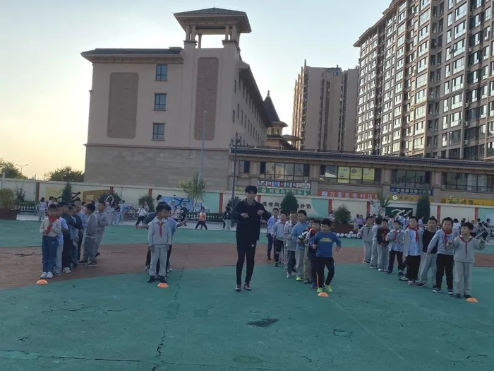 第一次去教室叫孩子们上体育课的时候,他们围在我身边不间断地问我:“老师,你是我们的体育课老师吗?老师,你会一直教我们吗?老师……”当我回答“是”时,孩子们立马大声地说:“太好了!我们有体育老师了!我们可以上体育课了!”然后在楼道里叽叽喳喳说个不停,有的甚至开心到不停地乱跑、乱蹦。
