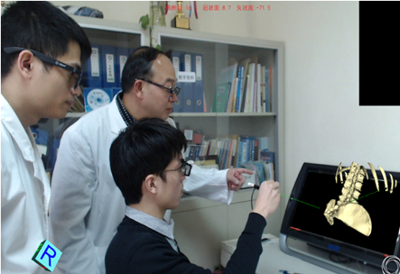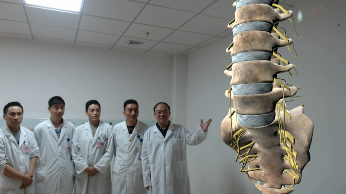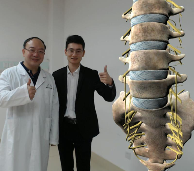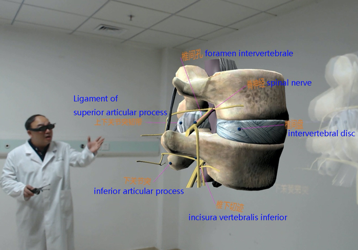 ▲李春海通过VR技术讲解腰椎的解剖