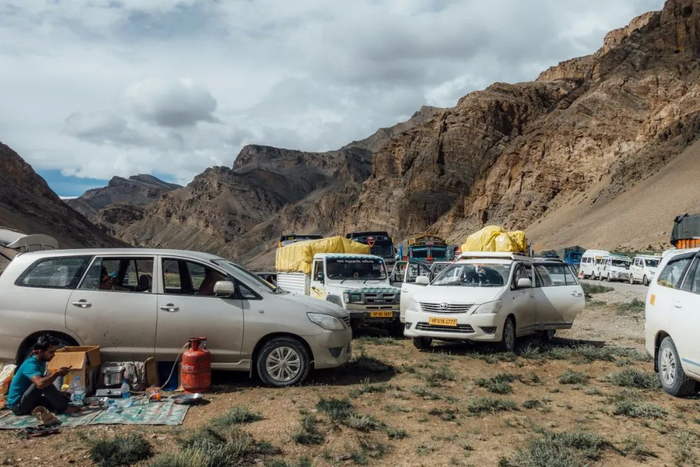 并且从基隆之后的Darcha村到拉达克的Rumtse村之间有250公里左右,基本上是无人区。夏天的几个月商贩们支起帐篷做生意,入冬之前就全部撤走了。我有一年11月走的马列公路,商贩已经撤空,路上什么补给都找不到,一直翻过塘朗山口下到Rumtse才找到吃饭的地方。因为万一下了雪,两头的路被封上,他们再想撤就来不及了。果然抵达列城三天后,便下雪封山了。