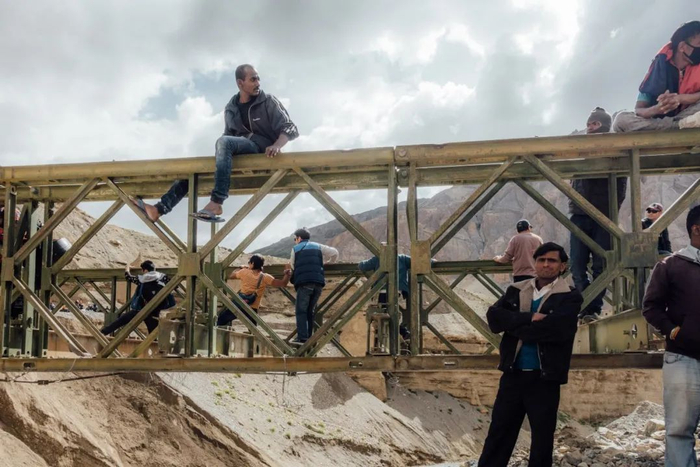 2015年我碰到这个桥的桥面被山洪冲掉了,于是印度人民这样爬过去