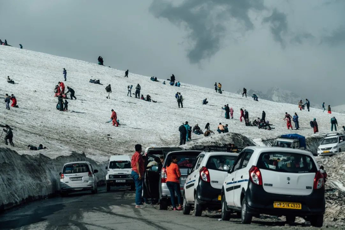 洛塘山口上的印度游客下饺子,对印度人民来说,看雪也是一种刚需