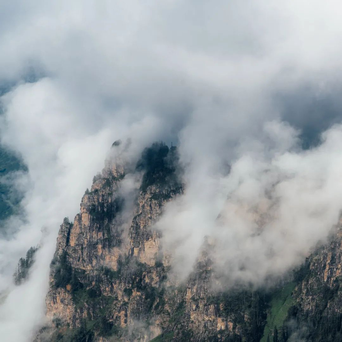 这座山由于地理位置关系,水汽非常重,常年云雾缭绕