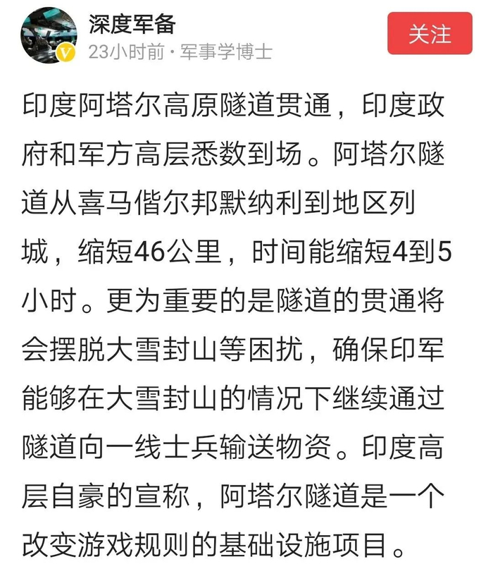 编者按:前几天,印度总理莫迪亲自剪彩通车了阿塔尔隧道(Atal Tunnel),这条号称“世界第一”的隧道因靠近中印边境,引起了国人的关注。然而目前关于这条隧道的信息基本上都是从印度媒体转引而来的,定居南印度的中国纪实摄影师莫希智为此专门撰写一篇文章,用自己的亲身经历对网传的四种说法逐一进行分析讲解,本网特刊登此文(删节版),供广大读者阅读参考。