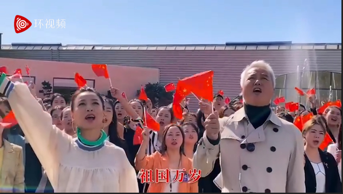 “自由时报”称,去年10月,林瑞阳的妻子张庭的个人微博贴出夫妻高举五星红旗,高喊“祖国生日快乐”“我爱你中国”等口号的视频,林瑞阳还留言“感谢祖国”,近期艺人欧阳娜娜在央视献唱《我的祖国》,林瑞阳举五星红旗的这则视频因而被网友挖出。