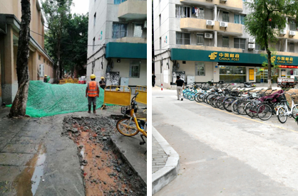 ▲中大邮局旁校道“雨污分流”施工前后对比图