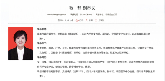 从履历上看,在华西医院是敬静工作履历中非常重要的一环。