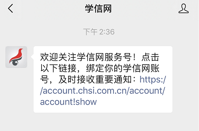 1、关注学信网服务号(微信号:chsi_chesicc),才能继续操作。