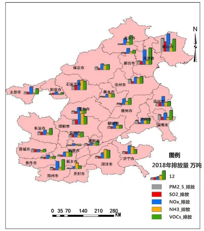 大气重污染成因与治理攻关项目研究结果显示,区域内唐山、天津的NOx排放量相对较高;行业/领域上机动车、非道路移动源、电力供热、钢铁焦化等对NOx排放的贡献突出。