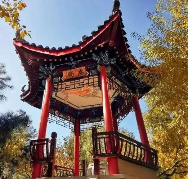 蓝天白云,苍翠葱茏春晓亭点缀其中