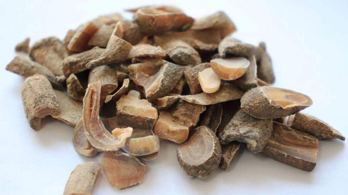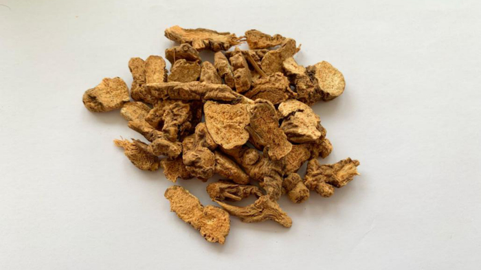 《本草害利》:有川产、广产,其根体锐圆如蝉腹,外黄内赤,去皮火干,色鲜微香,折之光明艳彻,苦中带甘者乃真,敲碎入煎,或磨汁冲。