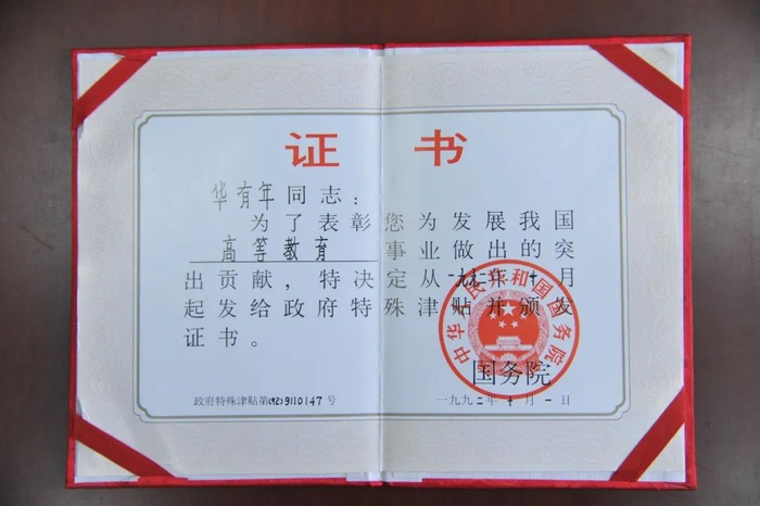 华有年获评政府特殊津贴获得者