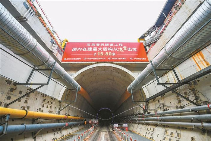 为了解决城市交通拥堵,深圳在春风高架下新建春风隧道,对一批市政道路实施“下沉”改造,建设地上地下立体交通网,增加城市交通设施供给,并结合工程特点应用最大直径盾构机施工等新设备、新工艺,探索特大城市交通基础设施立体规划建设经验。