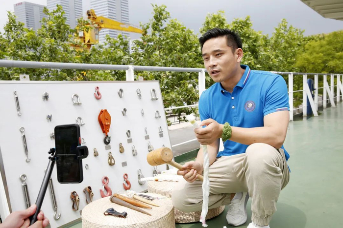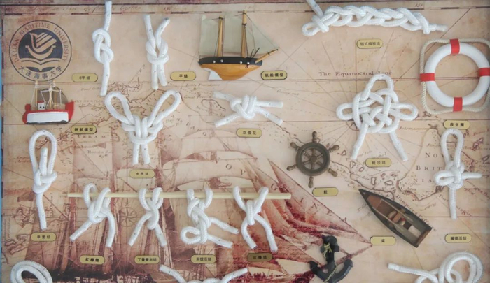 应用于航海领域的绳结是中国古代水手们智慧的结晶,便于船舶操作,是船员素养的基本要求。大连海事大学自建校之初就开设以绳结为重要内容的《船艺训练》课程,经过一代又一代海大师生的传承创新发展,现在的绳结形式多样,技艺精湛,声名远播。学校每年近40个班级,1200多名学生开展绳结课程学习和研究。出版绳结类教材8部,产生教学成果和实践活动多项。《实用绳结技术》成为广受欢迎的在线视频精品课程。学校学生多次取得中国海员技能大比武和全国航海类院校夏令营活动绳结比赛冠军。每年开展绳结艺术进社区、进中小学研学活动,承办青少年科学营、中国航海日、世界海员日等科普活动,使中华绳结文化得到普及、传承和创新发展。