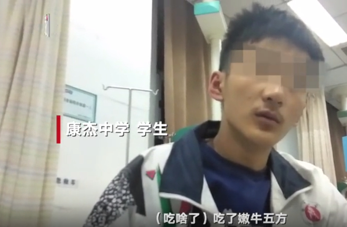 康杰中学高二年级教师刘先生负责在医院陪护学生,他告诉新京报记者,事发前,出现症状的学生均吃了一款名叫嫩牛五方的肉饼。一名在医院接受治疗的学生称,他吃了在康杰中学第二超市买的“嫩牛五方”肉饼后,出现了发烧症状。